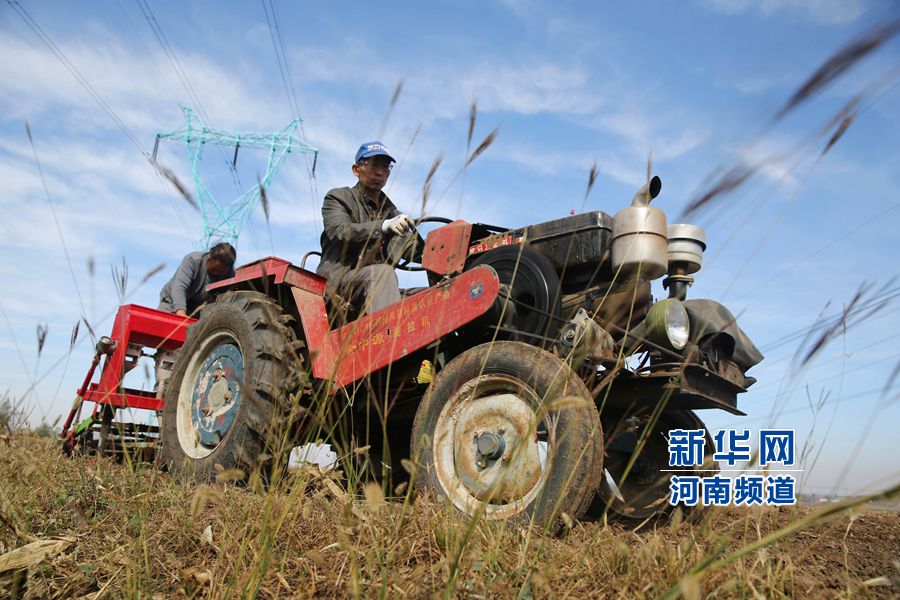 央廣網(wǎng)河南分網(wǎng)消息 眼下正值秋收秋種時節(jié),河南省平頂山市寶豐縣廣大農(nóng)民搶抓農(nóng)時,趁著晴好天氣和土壤商情,在田間地頭播種小麥、收獲花生等,田野里一派忙碌的豐收景象。何五昌 攝