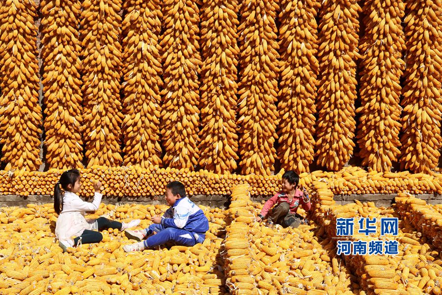 10月9日,河南省溫縣黃莊鎮(zhèn)衛(wèi)村幾名小朋友在玉米掛前玩耍。