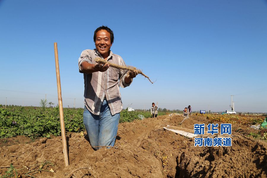 央廣網(wǎng)河南分網(wǎng)消息 霜降過后,河南省溫縣2.3萬畝鐵棍山藥陸續(xù)進(jìn)入收獲期,村民們忙著采收、銷售。今年鐵棍山藥長(zhǎng)勢(shì)看好,當(dāng)?shù)厮庌r(nóng)每畝平均收入在6000元以上。徐宏星 攝