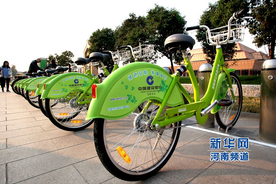 當(dāng)天,河南安陽市3500輛公共自行車正式投入使用,市民只需辦理一張租車卡,便可租賃自行車在市內(nèi)“馳騁”。據(jù)了解,安陽市公共自行車租車系統(tǒng)經(jīng)過前期設(shè)備安裝和調(diào)試,于11月1日開始試運(yùn)營,市區(qū)共建設(shè)公共自行車站點(diǎn)160個(gè)。市民在一個(gè)站點(diǎn)借車后可以還到其他任何一個(gè)站點(diǎn),一小時(shí)內(nèi)免費(fèi)騎用;超過一小時(shí)后每小時(shí)增收一元錢;如果有市民臨時(shí)有事不便歸還自行車,可以繼續(xù)租用,24小時(shí)最高收費(fèi)為10元。