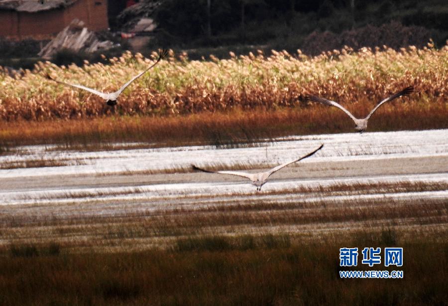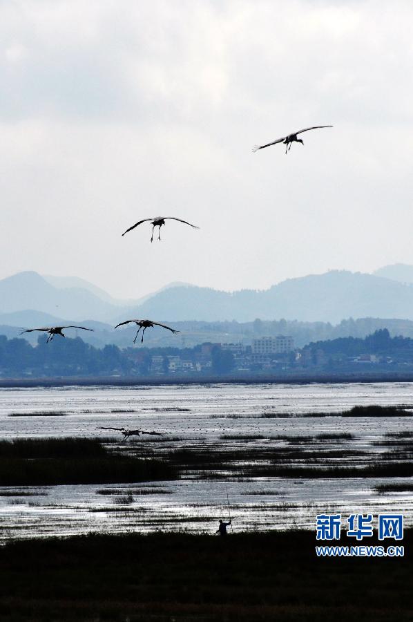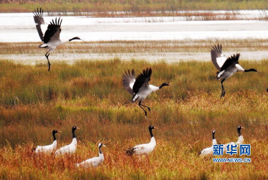 央廣網(wǎng)河南分網(wǎng)消息 近日來,位于貴州省畢節(jié)市威寧縣的草海國家級(jí)自然保護(hù)區(qū)迎來今年第一批越冬候鳥,為深秋的草海濕地平添些許生趣。草海是海拔2000米以上的淡水湖泊,是以高原濕地生態(tài)系統(tǒng)及其珍稀鳥類為主要保護(hù)對(duì)象的綜合性自然保護(hù)區(qū),每年有包括國家一級(jí)保護(hù)物種黑頸鶴在內(nèi)的200多種鳥類在此過冬。新華社發(fā)(楊文斌 攝)