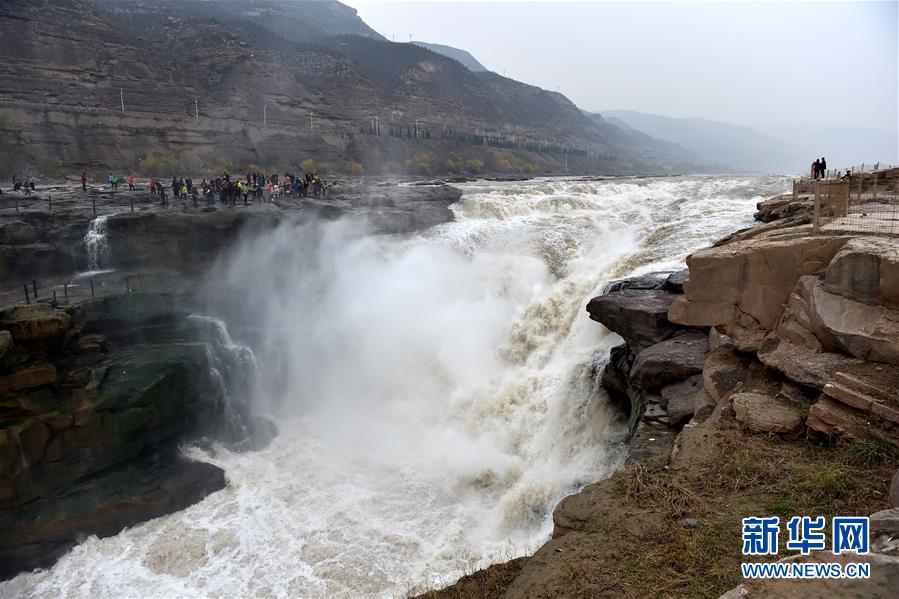 央廣網(wǎng)河南分網(wǎng)消息 近日,受上游持續(xù)降雨天氣影響,位于山西省吉縣和陜西省宜川縣交界的黃河壺口瀑布水量激增,瀑布瀑面驟然變寬,形成特大瀑布群。奔騰咆哮的黃河水翻滾而下,氣勢磅礴,甚為壯觀。新華社記者 詹彥 攝