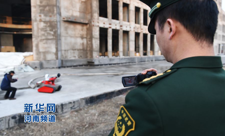 在消防機(jī)器人模擬救災(zāi)展示現(xiàn)場,該款機(jī)器人相繼完成了百米遠(yuǎn)距離行走、360°探頭偵測、30米高建筑物噴水等消防必備功能。