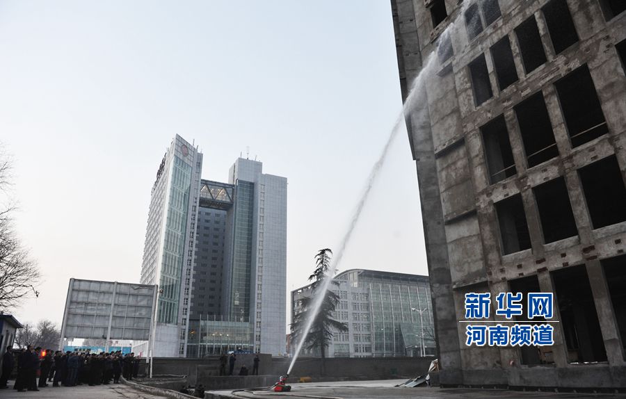 對建筑物30米高的模擬火點(diǎn)噴水。