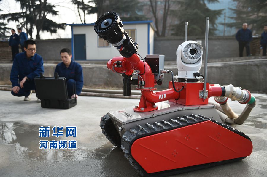 該款新型履帶式消防機(jī)器人,搭載氣體探測、圖像采集、水炮等設(shè)備,可代替消防救援人員進(jìn)入易燃、易爆、有毒、缺氧、濃煙等危險災(zāi)害事故現(xiàn)場進(jìn)行探測、搜救、滅火。并具有遠(yuǎn)程多向遙控、噴射流量大、射程遠(yuǎn)、機(jī)動性強(qiáng)等優(yōu)點(diǎn),適應(yīng)各種路面,可大大解決消防人救災(zāi)時的人身安全及數(shù)據(jù)信息采集不足等問題。(黃政偉 攝影)