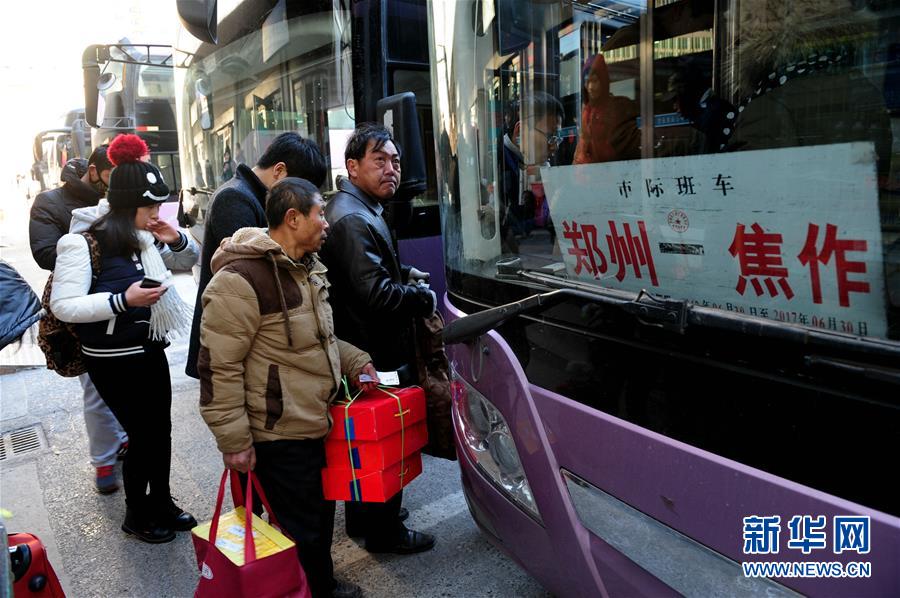 央廣網(wǎng)河南分網(wǎng)消息 1月24日,旅客在鄭州長(zhǎng)途汽車中心站乘車。當(dāng)日,為期40天的2016年春運(yùn)正式拉開大幕。據(jù)交通運(yùn)輸部預(yù)測(cè),預(yù)計(jì)全國(guó)旅客發(fā)送量將達(dá)到29.1億人次、同比增長(zhǎng)3.6%。新華社發(fā)(馮大鵬攝)