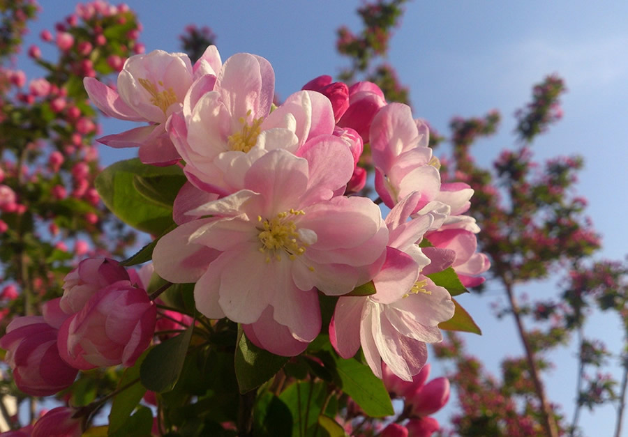 海棠花結(jié)出的果實(shí)稱作海棠果,該果子味道酸甜,吃起來(lái)像山楂,可以新鮮食用也可以做成蜜餞。海棠果中有豐富的維生素有機(jī)酸,能有效地助消化。