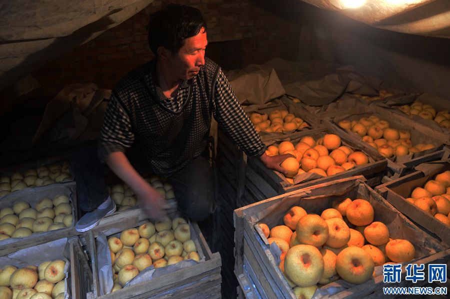 3月17日,寧陵縣石橋鎮(zhèn)郭岔樓村農(nóng)民王照清在地窖里查看滯銷的酥梨。目前,他家還有兩萬多公斤梨果沒賣出去。