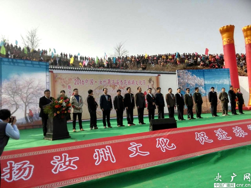 央廣網(wǎng)河南分網(wǎng)3月20日消息 (記者 趙飛 雷燕超 通訊員 桂焱煒 郭汝壘)戶外歡歌慶盛會,杏花綻放迎嘉賓。3月19日上午,在河南省汝州市大峪鎮(zhèn)邢窯村村前廣場上,彩旗飛揚(yáng),杏花飄香,來自鄭州、洛陽、平頂山、開封、汝陽等地的戶外好者數(shù)千人齊聚一堂,共同感受2016中國·汝州第五屆杏花旅游文化節(jié)的喜慶氛圍。