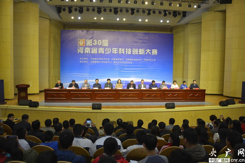參賽選手、新鄉(xiāng)市第一中學(xué)周昊宣讀《致全省青少年朋友倡議書》:“要努力學(xué)習(xí)科學(xué)文化知識,勤思好問,刻苦專研,把‘大眾創(chuàng)業(yè)萬眾創(chuàng)新’的理念付諸實踐,為全國全省科技發(fā)展注入新的力量!