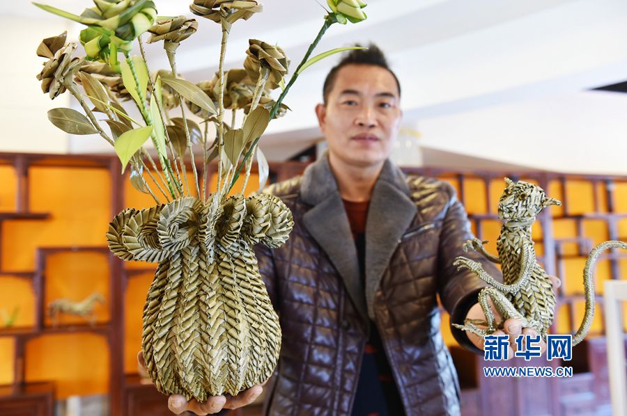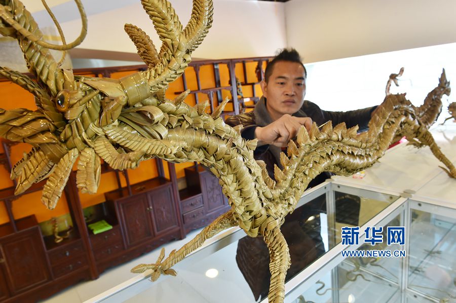 據(jù)王潤鑫介紹,一件精巧棕編作品的出爐,要經(jīng)過選材、熏蒸、陰晾、編織、刷漆等多道工序,其中最關(guān)鍵的編織階段,棕櫚葉還要經(jīng)過拉、疊、剪、折、插等多種編織技法工序。經(jīng)他手編織的花籃、十二生肖、蝴蝶、猴子、龍等上百余種動(dòng)物和昆蟲造型,神態(tài)迥異,活靈活現(xiàn)。他還研究出花籃、龍等多種復(fù)雜棕編制品,頻頻亮相各類展會(huì),受到更多人的喜愛和熟知。新華網(wǎng)發(fā)(黃政偉 攝)