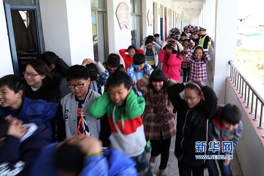 3月28日,河南省溫縣徐堡小學(xué)學(xué)生在進(jìn)行應(yīng)急疏散演練。