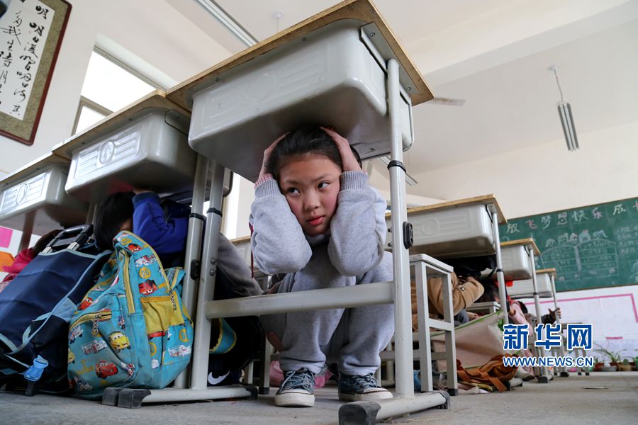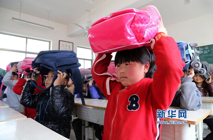 3月28日,河南省溫縣徐堡小學(xué)學(xué)生在學(xué)習(xí)防震減災(zāi)技能。