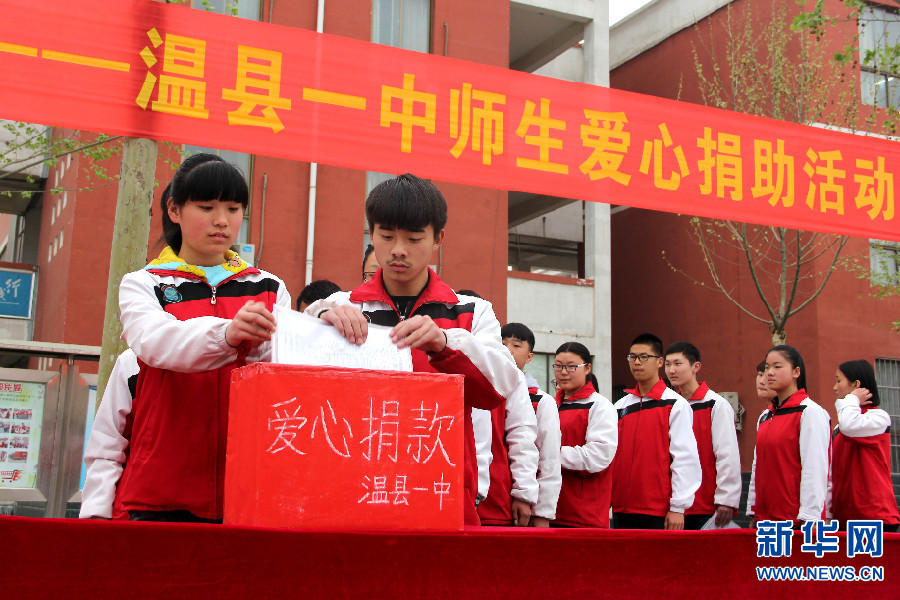 4月5日,河南省溫縣一中師生在參加愛心捐助活動。