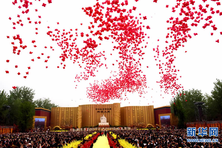 這是4月9日拍攝的丙申年黃帝故里拜祖大典現(xiàn)場。