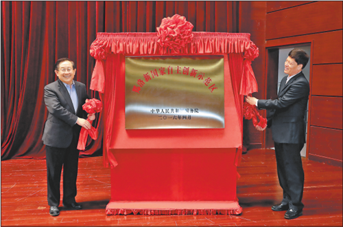 萬(wàn)鋼、謝伏瞻共同為鄭洛新國(guó)家自主創(chuàng)新示范區(qū)揭牌?萍疾扛辈块L(zhǎng)陰和俊宣讀了《國(guó)務(wù)院關(guān)于同意鄭洛新國(guó)家高新區(qū)建設(shè)國(guó)家自主創(chuàng)新示范區(qū)的批復(fù)》。