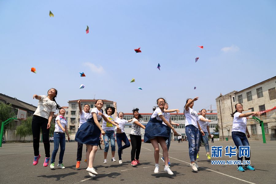 5月28日,河南省溫縣實驗中學(xué)的學(xué)生們拍下創(chuàng)意畢業(yè)照,用自己特有的方式,告別初中生活,向母校告別。 新華網(wǎng)發(fā)(徐宏星 攝)