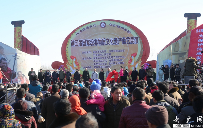 在河南省寶豐縣馬街書會(huì)民間藝人的精彩表演博得觀眾陣陣喝彩。
