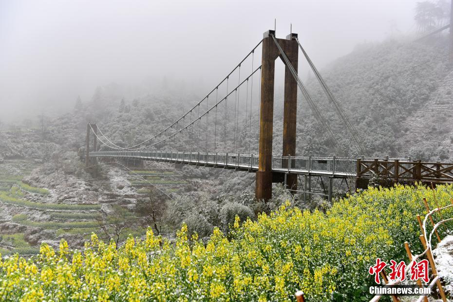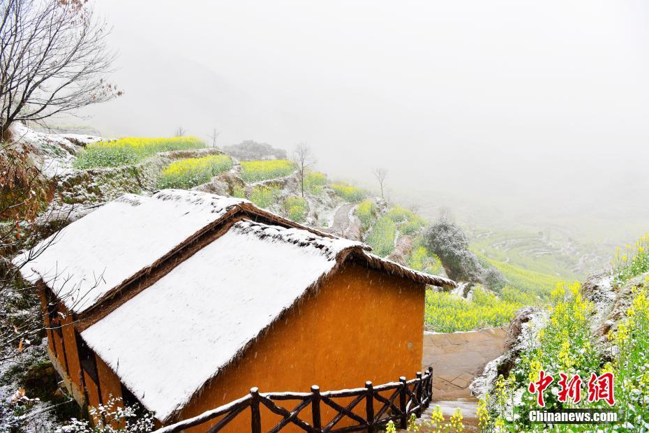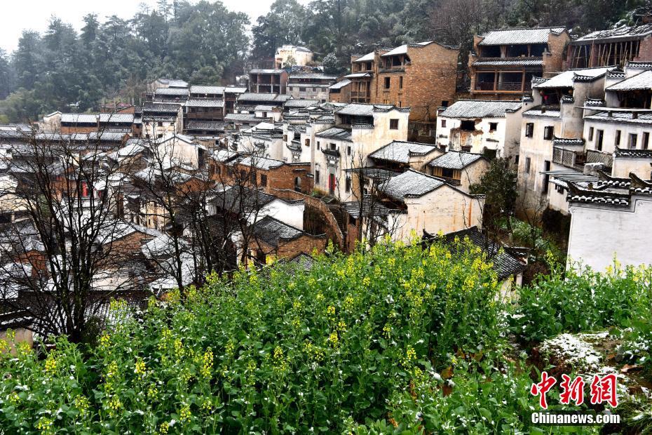 2月23日,“中國最美鄉(xiāng)村”江西省婺源縣迎來罕見春雪。由于前期時(shí)間的氣溫回升,婺源的油菜花普遍提前綻放。當(dāng)白墻黛瓦的徽派建筑與萬畝油菜花海遇上春雪,大自然的巧手繪出一幅美妙動(dòng)人的圖卷。曹加祥 攝 -