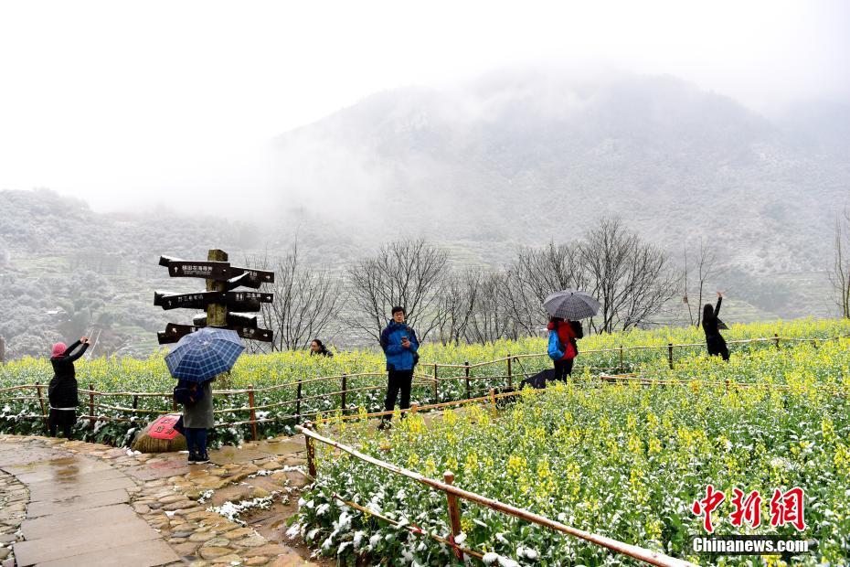 2月23日,“中國最美鄉(xiāng)村”江西省婺源縣迎來罕見春雪。由于前期時(shí)間的氣溫回升,婺源的油菜花普遍提前綻放。當(dāng)白墻黛瓦的徽派建筑與萬畝油菜花海遇上春雪,大自然的巧手繪出一幅美妙動(dòng)人的圖卷。曹加祥 攝