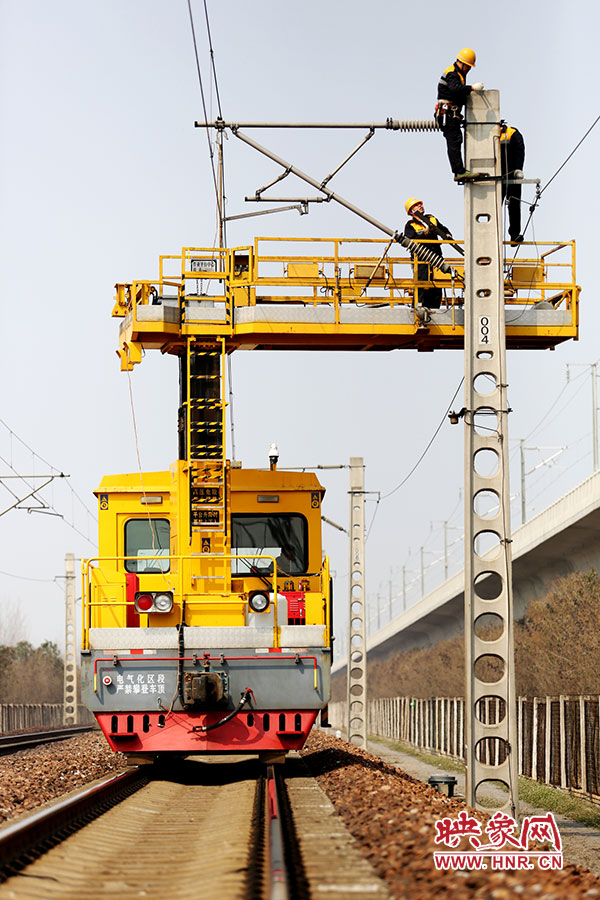 央廣網(wǎng)河南分網(wǎng)消息 (記者 阮海峰 文/圖 實習(xí)生 劉亞楠)3月17日,映象網(wǎng)記者從鄭州鐵路局獲悉,鄭州鐵路局鄭州供電段為隴海鐵路“把脈問診”,確保供電設(shè)備“健康”。 記者了解到,近日,鄭州鐵路局鄭州供電段利用春季這個檢修供電設(shè)備的黃金時期,組織全段職工在管內(nèi)隴海鐵路線上進行集中維修施工作業(yè),為隴海鐵路“把脈問診”,確保供電設(shè)備“健康”。 據(jù)有關(guān)負責(zé)人介紹,此次鄭州供電段計劃利用33個施工“天窗”,完成接觸網(wǎng)全面檢查177.532條公里。計劃投入軌道作業(yè)車264臺次,梯車132臺次,重點對供電設(shè)備的主導(dǎo)電回路、絕緣部件、線岔、吊弦等重要部位進行全面檢查整治,為列車出行提供安全優(yōu)質(zhì)供電。 -