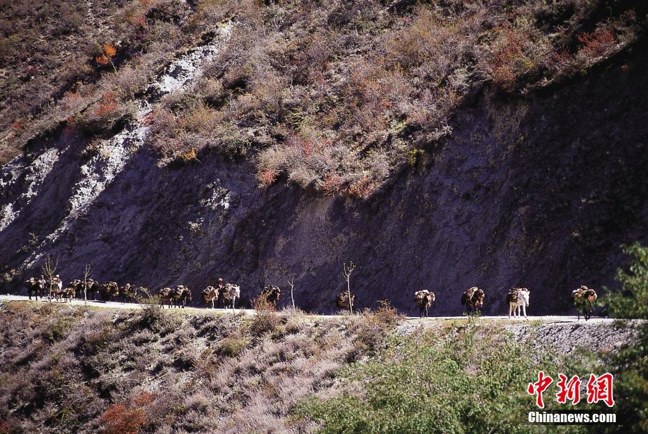 我們從古道沿途的傣、布朗、基諾、哈尼、佤、苗、彝、回、白、納西、藏和漢各族群眾各不相同,卻又互有因襲的飲茶習(xí)俗中,明白了茶作為世界三大飲料之一的文化內(nèi)蘊(yùn)。圖為云南迪慶德欽,茶馬古道上的馬幫。 安哥 攝 圖片來源:CTPphoto -