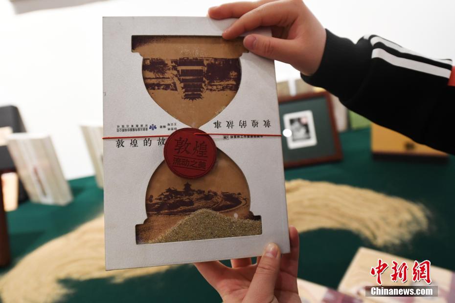 3月23日,以敦煌文化為素材創(chuàng)作的手工書《敦煌的故事》亮相蘭州,該書封面上沙漏形狀的創(chuàng)意設(shè)計讓敦煌莫高窟和月牙泉由一捧流動的沙粒連接在一起,讀者可伴隨著沙沙的聲響,感受書中敦煌的魅力。當(dāng)日,掐絲琺瑯?biāo)囆g(shù)、漆畫藝術(shù)、敦煌剪紙藝術(shù)、手工書等多種藝術(shù)展現(xiàn)的敦煌文化亮相甘肅省非物質(zhì)文化遺產(chǎn)精品專題展。中新社記者 楊艷敏 攝