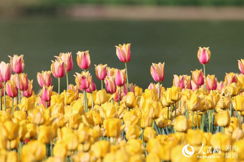 日前,三門峽黃河公園15萬株郁金香美麗綻放,婀娜多姿、五顏六色的郁金香與碧水藍(lán)天交相輝映,美輪美奐,吸引了眾多游客和市民前來踏春賞花,健身休閑! -