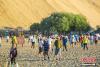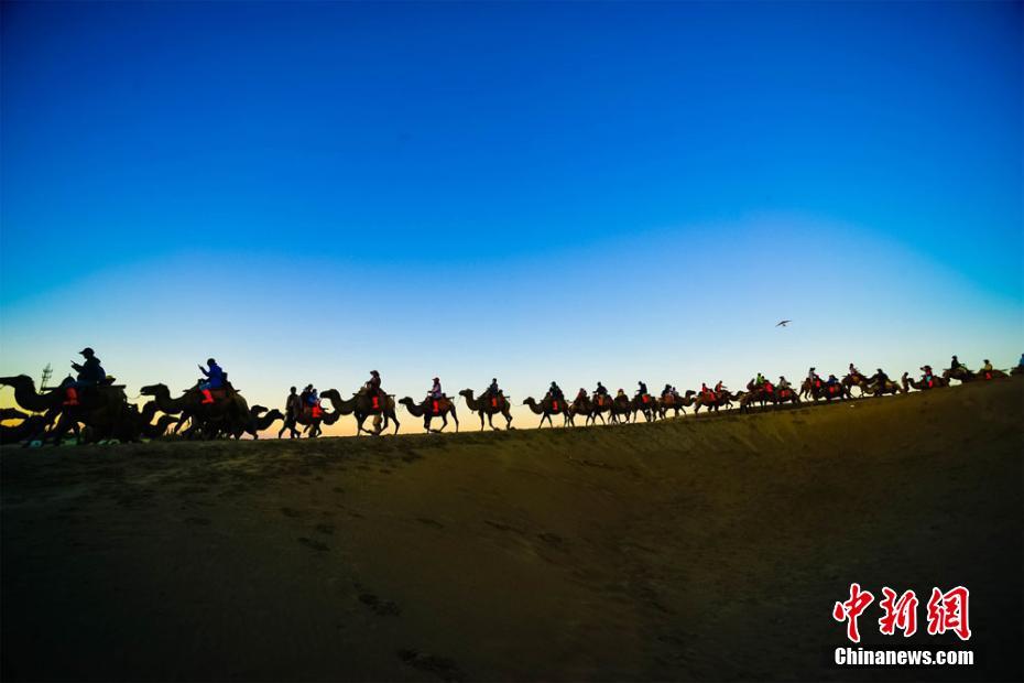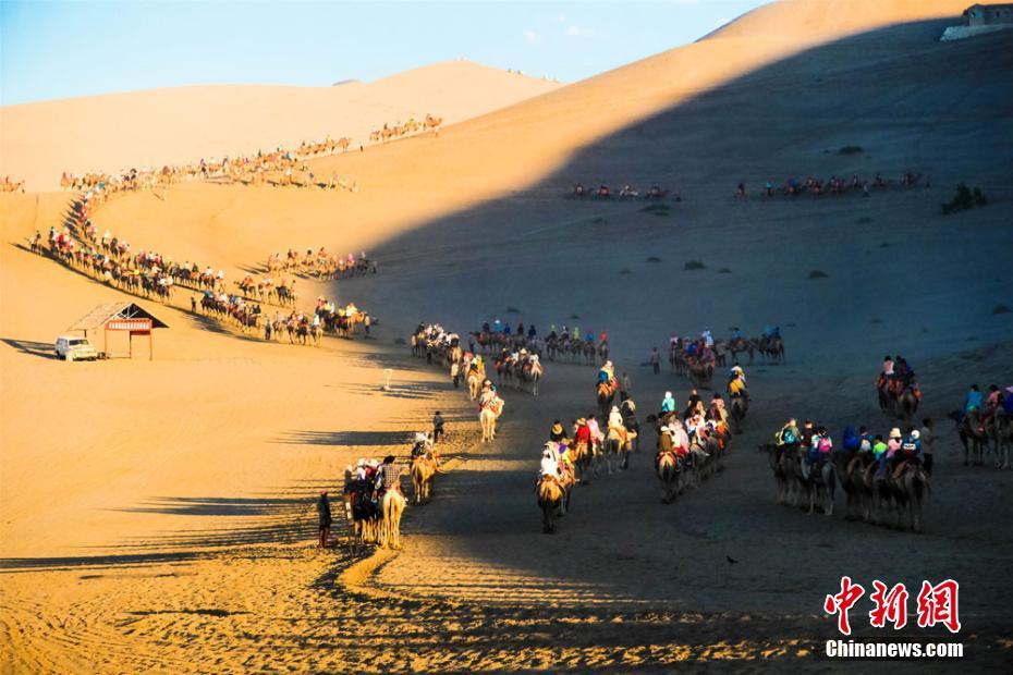 敦煌鳴沙山下蜿蜒數(shù)公里的觀(guān)光駝隊(duì)。王斌銀 攝