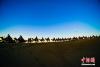 鳴沙山上,長(zhǎng)長(zhǎng)的駝隊(duì)蜿蜒遠(yuǎn)去,一直持續(xù)到月亮升起。王斌銀 攝 -