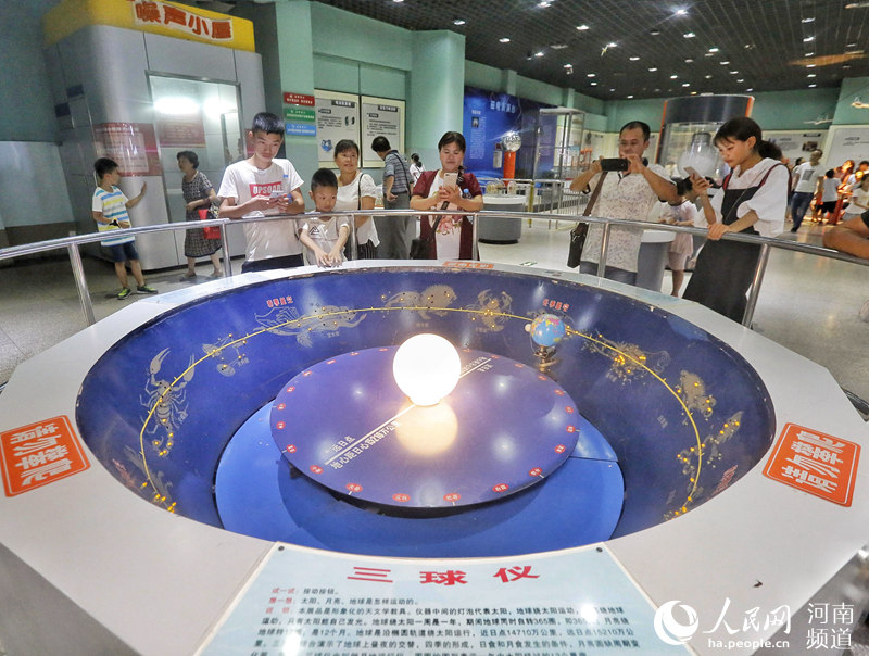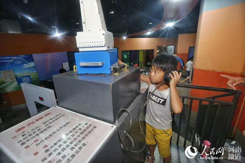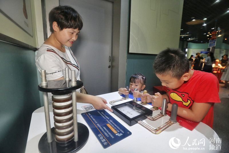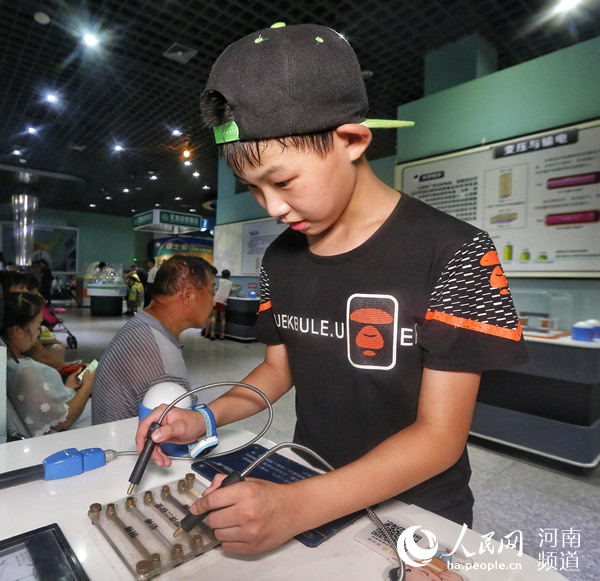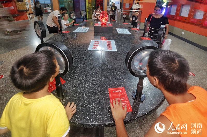 “走,我們?nèi)プ帕ψ巍薄扒?磁懸浮地月演示儀”……8月17日下午,雖然天氣炎熱,但鄭州市科技館的門前還是排起了長隊,科技館內(nèi),“電子加速器”“渦流旋轉(zhuǎn)球”“彩環(huán)翻跳”“柔和電擊”等各種神奇的科技展品讓學(xué)生們大開眼界,其中還有不少是可以動手操作體驗(yàn)的,他們紛紛體驗(yàn)操作各種科技展品、測試自己的智力或反應(yīng)力…… -