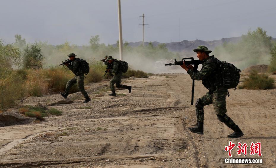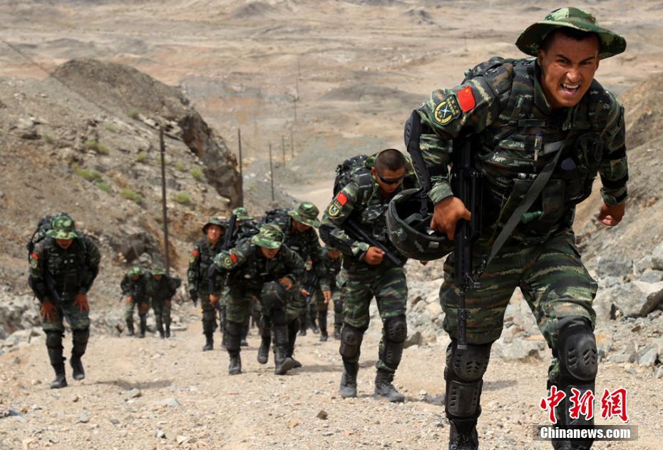 8月16日至22日,武警新疆巴州支隊為期一周的特戰(zhàn)尖兵“魔鬼周”極限訓(xùn)練在庫爾勒市某山區(qū)拉開戰(zhàn)幕。此次魔鬼集訓(xùn)的科目設(shè)置均以模擬逼真戰(zhàn)場環(huán)境、鍛造過硬實戰(zhàn)本領(lǐng)為目的,以高強(qiáng)度、超負(fù)荷、大極限的考比拉抗為手段,采取分組聯(lián)訓(xùn)、小組集成、模擬對抗、爭旗奪星等方法,訓(xùn)練全程隨機(jī)導(dǎo)調(diào),全方位考驗特戰(zhàn)隊員的技術(shù)、戰(zhàn)術(shù)、心理、意志、體能,以實現(xiàn)極限訓(xùn)練與戰(zhàn)斗精神培育的有機(jī)融合。圖為沖鋒堵截。 張慧疆 攝 -