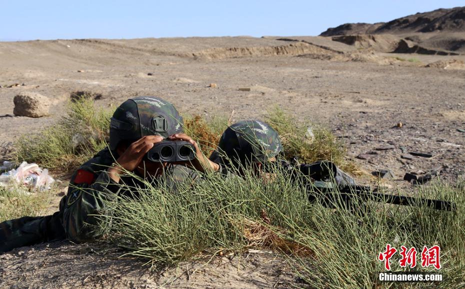 8月16日至22日,武警新疆巴州支隊為期一周的特戰(zhàn)尖兵“魔鬼周”極限訓(xùn)練在庫爾勒市某山區(qū)拉開戰(zhàn)幕。此次魔鬼集訓(xùn)的科目設(shè)置均以模擬逼真戰(zhàn)場環(huán)境、鍛造過硬實戰(zhàn)本領(lǐng)為目的,以高強(qiáng)度、超負(fù)荷、大極限的考比拉抗為手段,采取分組聯(lián)訓(xùn)、小組集成、模擬對抗、爭旗奪星等方法,訓(xùn)練全程隨機(jī)導(dǎo)調(diào),全方位考驗特戰(zhàn)隊員的技術(shù)、戰(zhàn)術(shù)、心理、意志、體能,以實現(xiàn)極限訓(xùn)練與戰(zhàn)斗精神培育的有機(jī)融合。圖為發(fā)現(xiàn)目標(biāo)。 張慧疆 攝 -