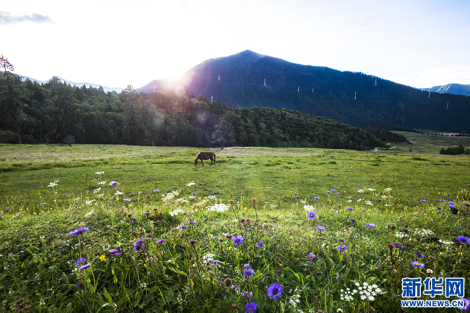 海拔3700米的高山牧場,坐落在魯朗的深山老林之中,周圍青山環(huán)抱,樹木蔥郁,由低往高分別為灌木叢、云杉和松樹組成的“魯朗林!;中間的草甸平整肥美,溪流清冽,蜿蜒坪上;草場上成千上萬種野花怒放盛開,蝶、鳥紛飛,穿越其間;木籬笆、木板屋、木頭橋及農(nóng)牧民的村寨星落棋布、錯(cuò)落有秩地點(diǎn)綴青山草甸間;農(nóng)牧民種植的不同作物將田地分條分塊地涂滿不同顏色。這一切共同構(gòu)筑了一幅富饒、靜怡的“山居圖”。 -