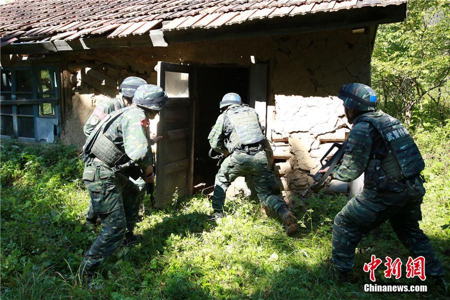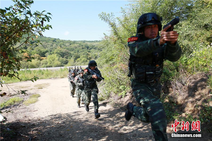 近日,武警吉林省總隊(duì)組織特戰(zhàn)隊(duì)員在威虎嶺一帶的深山密林中進(jìn)行三季度“魔鬼周”極限訓(xùn)練,這是該總隊(duì)首次采取純野外、放棄基地化保障、全程實(shí)行特戰(zhàn)隊(duì)員自我保障的一種訓(xùn)練模式。重點(diǎn)利用一周時(shí)間圍繞原始森林和深山密林開展緊急出動(dòng)、長(zhǎng)途行軍、戰(zhàn)斗行動(dòng)、野外生存等內(nèi)容的訓(xùn)練,穿插進(jìn)行部分技能、戰(zhàn)術(shù)等基礎(chǔ)課目訓(xùn)練。圖為特戰(zhàn)小組向“犯罪分子”藏匿的房間躍進(jìn)。 梁永剛 攝 -