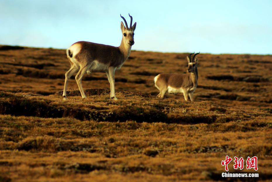 兩只藏原羚在瑪多草原上尋覓食物。瑪多縣委宣傳部供圖 -