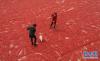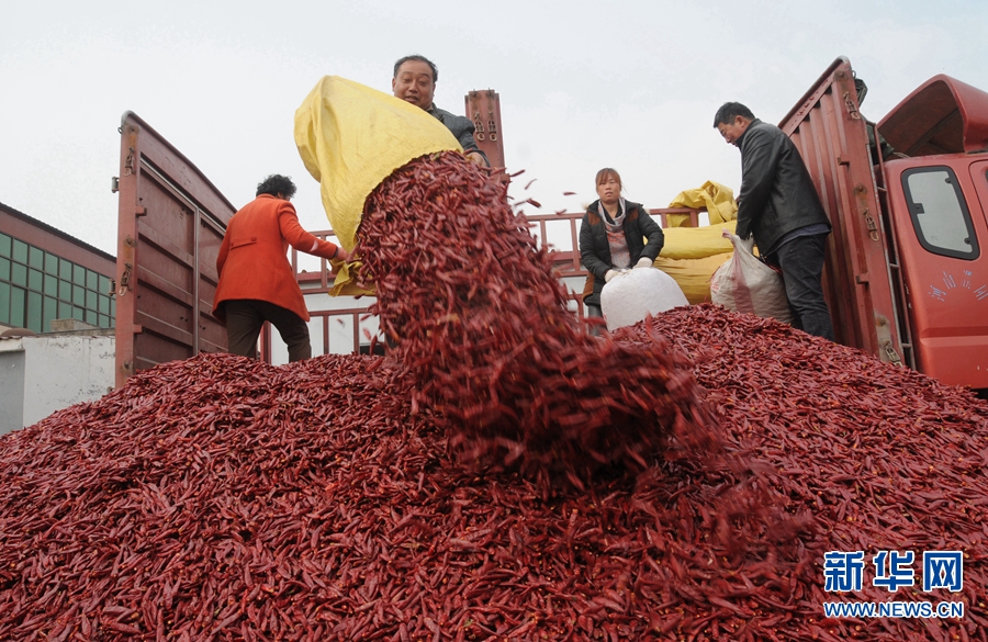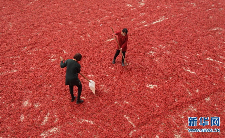 金秋時(shí)節(jié),河南省內(nèi)黃縣種植的29萬(wàn)畝辣椒喜獲豐收,當(dāng)?shù)剞r(nóng)民抓住晴好天氣進(jìn)行摘收,鄉(xiāng)間一派火紅景象。小尖椒種植已成為當(dāng)?shù)剞r(nóng)民脫貧致富的重要途徑。新華網(wǎng)發(fā)(劉肖坤 攝) -