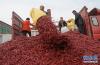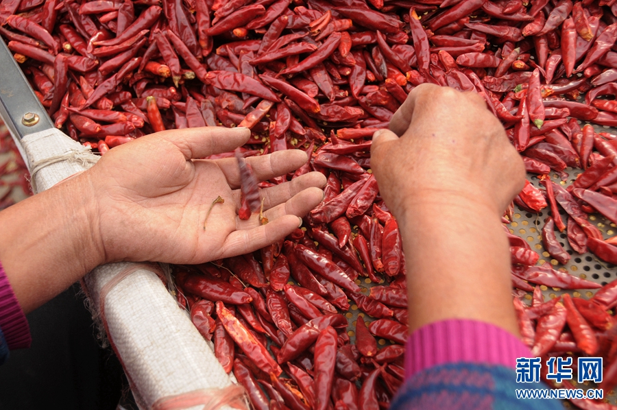11月2日,內(nèi)黃縣六村鄉(xiāng)農(nóng)民正在分揀辣椒。金秋時(shí)節(jié),河南省內(nèi)黃縣種植的29萬(wàn)畝辣椒喜獲豐收,當(dāng)?shù)剞r(nóng)民抓住晴好天氣進(jìn)行摘收,鄉(xiāng)間一派火紅景象。小尖椒種植已成為當(dāng)?shù)剞r(nóng)民脫貧致富的重要途徑。新華網(wǎng)發(fā)(劉肖坤 攝) -