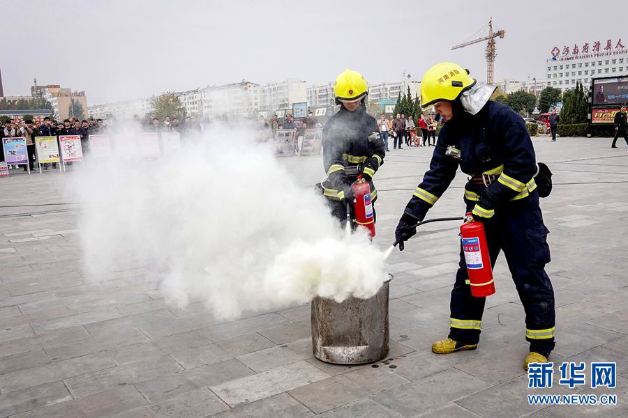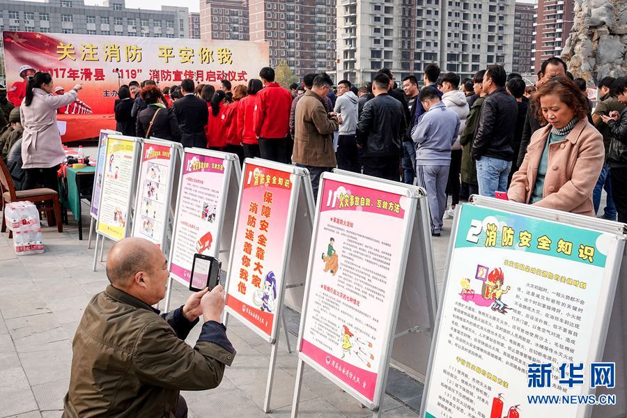 • 2017年11月9日,河南省滑縣新區(qū)廣場,全國第27屆“119”消防日,該縣防火安全委員會舉行“關注消防,平安你我”119消防宣傳月活動啟動儀式。當日,河南省滑縣防火安全委員會通過消防安全知識版面宣傳和滅火實戰(zhàn)演練、高空救援演習,對消防宣傳示范社區(qū)、消防宣傳公益使者、社區(qū)消防宣傳大使進行表彰,拉開了“關注消防,平安你我”119消防宣傳月活動的序幕。新華網(wǎng)發(fā) (王子瑞 攝)