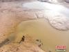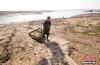 在鄱陽湖都昌印山附近水域,漁民在干涸的湖汊中捕魚蝦。傅建斌 攝