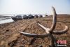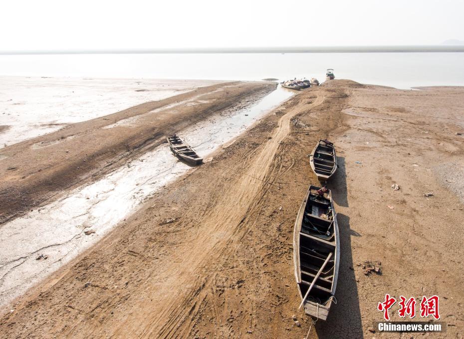 漁船停靠在枯水的鄱陽湖湖洲上。傅建斌 攝 -