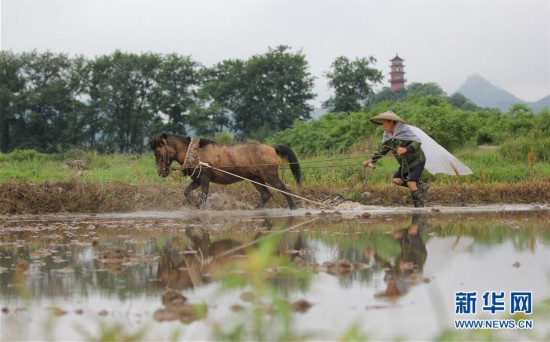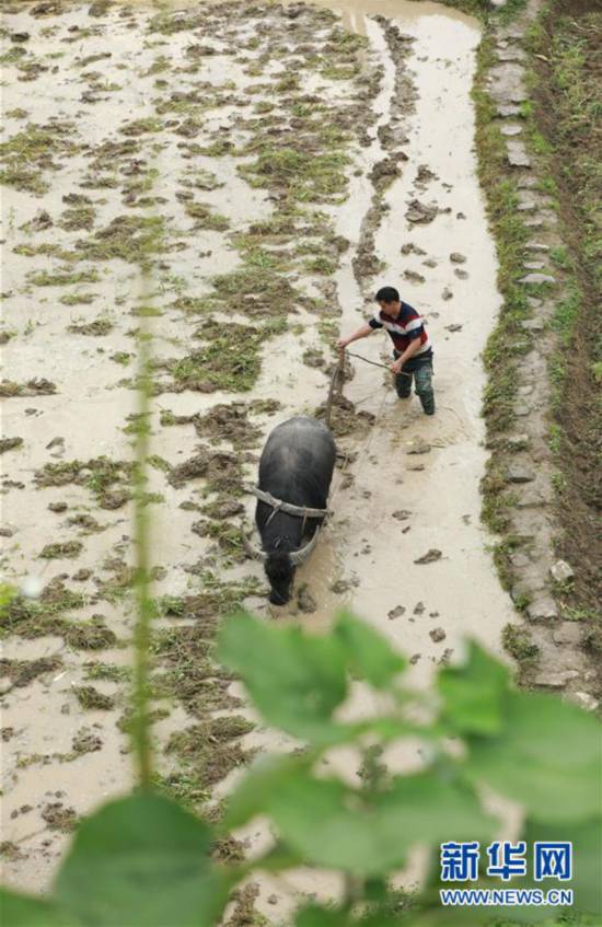 5月5日,在湖南省永州市道縣清塘鎮(zhèn)達(dá)一村村民在犁田。 立夏節(jié)氣將至,各地農(nóng)民搶抓農(nóng)時(shí),田間地頭隨處可見農(nóng)民們忙碌的身影。 新華社發(fā)(何紅福 攝) -