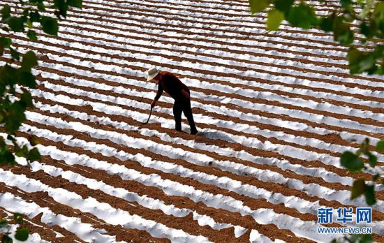 5月5日,山西運(yùn)城市新絳縣龍興鎮(zhèn)橋東村村民為種植的山藥苗搭架子。 立夏節(jié)氣將至,各地農(nóng)民搶抓農(nóng)時(shí),田間地頭隨處可見農(nóng)民們忙碌的身影。 新華社發(fā)(高新生 攝) -