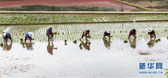 5月5日,在貴州省丹寨縣南皋鄉(xiāng)清江村,苗族村民在水田里勞作。 立夏節(jié)氣將至,各地農(nóng)民搶抓農(nóng)時(shí),田間地頭隨處可見農(nóng)民們忙碌的身影。 新華社發(fā)(黃曉海 攝) -