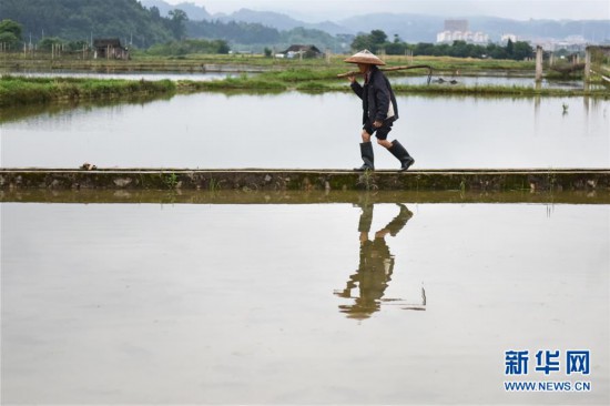 5月5日,貴州省錦屏縣敦寨鎮(zhèn)平江村村民從田埂上走過。 立夏節(jié)氣將至,各地農(nóng)民搶抓農(nóng)時(shí),田間地頭隨處可見農(nóng)民們忙碌的身影。 新華社發(fā)(彭澤良 攝) -