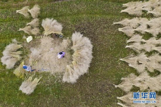 5月5日,江西九江市都昌縣陽峰鄉(xiāng)屏峰村村民在田間收割油菜(無人機(jī)拍攝)。 立夏節(jié)氣將至,各地農(nóng)民搶抓農(nóng)時(shí),田間地頭隨處可見農(nóng)民們忙碌的身影。 新華社發(fā)(傅建斌 攝) -