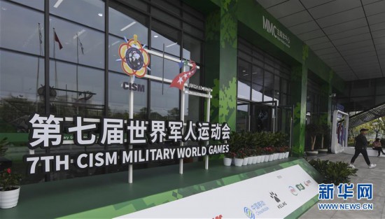 這是主媒體中心門口(10月14日攝)。 第七屆世界軍人運動會即將于10月18日正式開幕,目前,主媒體中心已經(jīng)運營,部分注冊媒體已經(jīng)陸續(xù)入駐,開始前期報道工作。 新華社記者 程敏 攝 -