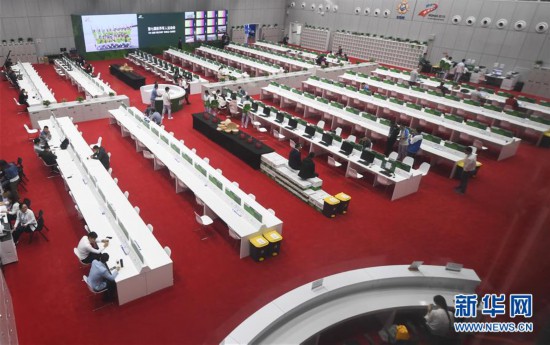 10月14日,工作人員在媒體工作間作賽事服務(wù)準(zhǔn)備工作。 第七屆世界軍人運動會即將于10月18日正式開幕,目前,主媒體中心已經(jīng)運營,部分注冊媒體已經(jīng)陸續(xù)入駐,開始前期報道工作。 新華社記者 程敏 攝 -