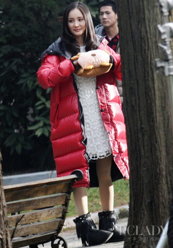 楊冪掀御寒先鋒 羽絨服顯瘦駕馭低溫