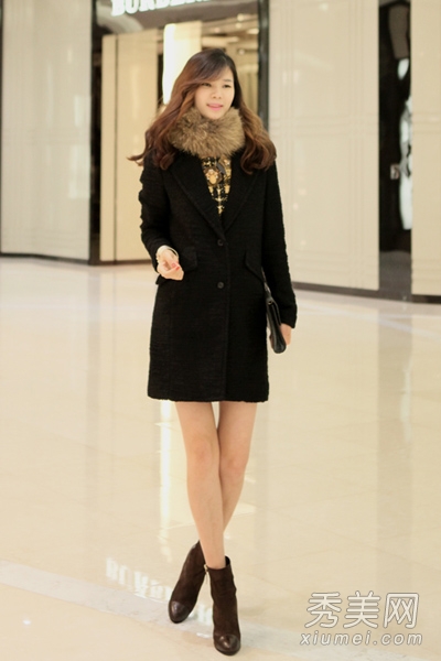 長款的黑色呢子大衣在冬季很常見,這樣歐美風(fēng)格的呢子大衣在冬季更加的流行,V領(lǐng)的設(shè)計搭配上皮草款式圍脖就很顯高貴時尚檔次了,內(nèi)搭上印花的連衣裙,在加上短靴的搭配,氣質(zhì)迷人,保暖御寒!